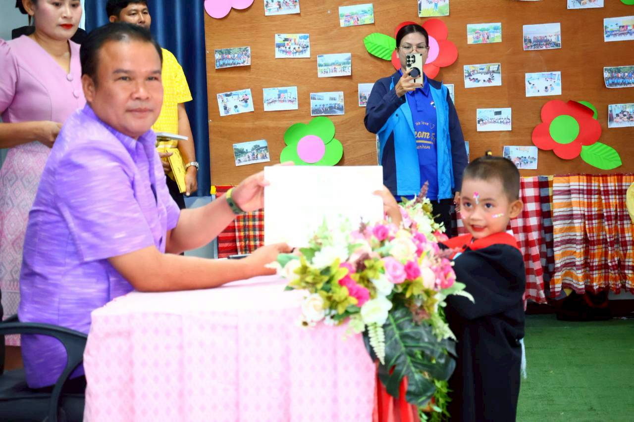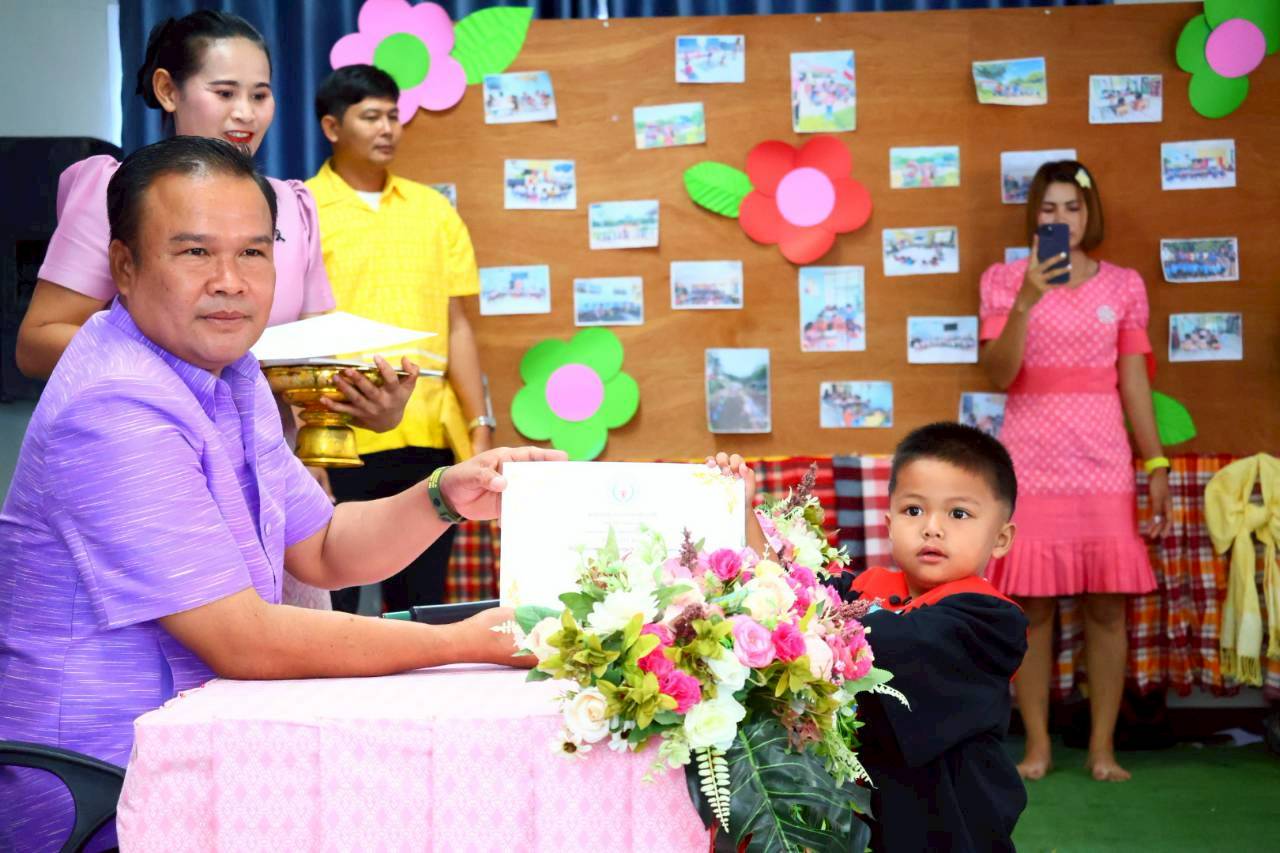 เทศบาลตำบลจันทบเพชร วันที่ 25 มีนาคม 2569 เวลา 09.00 น. นายธีระศักดิ์ บุญด้วง นายกเทศมนตรี เป็นประธานกล่าวเปิดงาน และมอบเกียรติบัตร ในกิจกรรมบัณฑิตน้อย ศูนย์อบรมเด็กก่อนเกณฑ์วัดสายโท 6 เหนือ ประจำปีการศึกษา 2568 พร้อมด้วย สมาชิกสภา คณะกรรมการสถานศึกษา พนักงานและเจ้าหน้าที่กองการศึกษา และผู้ปกครอง ณ ศูนย์อบรมเด็กก่อนเกณฑ์วัดสายโท 6 เหนือ โดยมีวัตถุประสงค์ เพื่อสร้างขวัญกำลังใจ ความภาคภูมิใจในความสำเร็จเบื้องต้นแก่เด็กและผู้ปกครอง เสริมสร้างความรู้สึกรักและผูกพันกับสถานศึกษา พัฒนาศักยภาพเด็กทั้งด้านร่างกาย อารมณ์ สังคม และสติปัญญา รวมถึงกระตุ้นให้เด็กเห็นความสำคัญของการศึกษาและอยากเรียนต่อในระดับที่สูงขึ้น