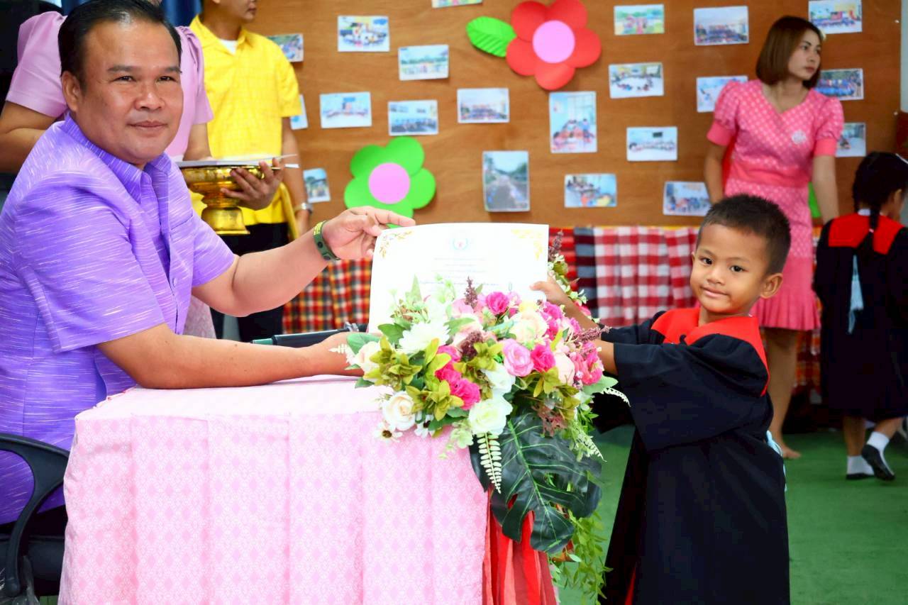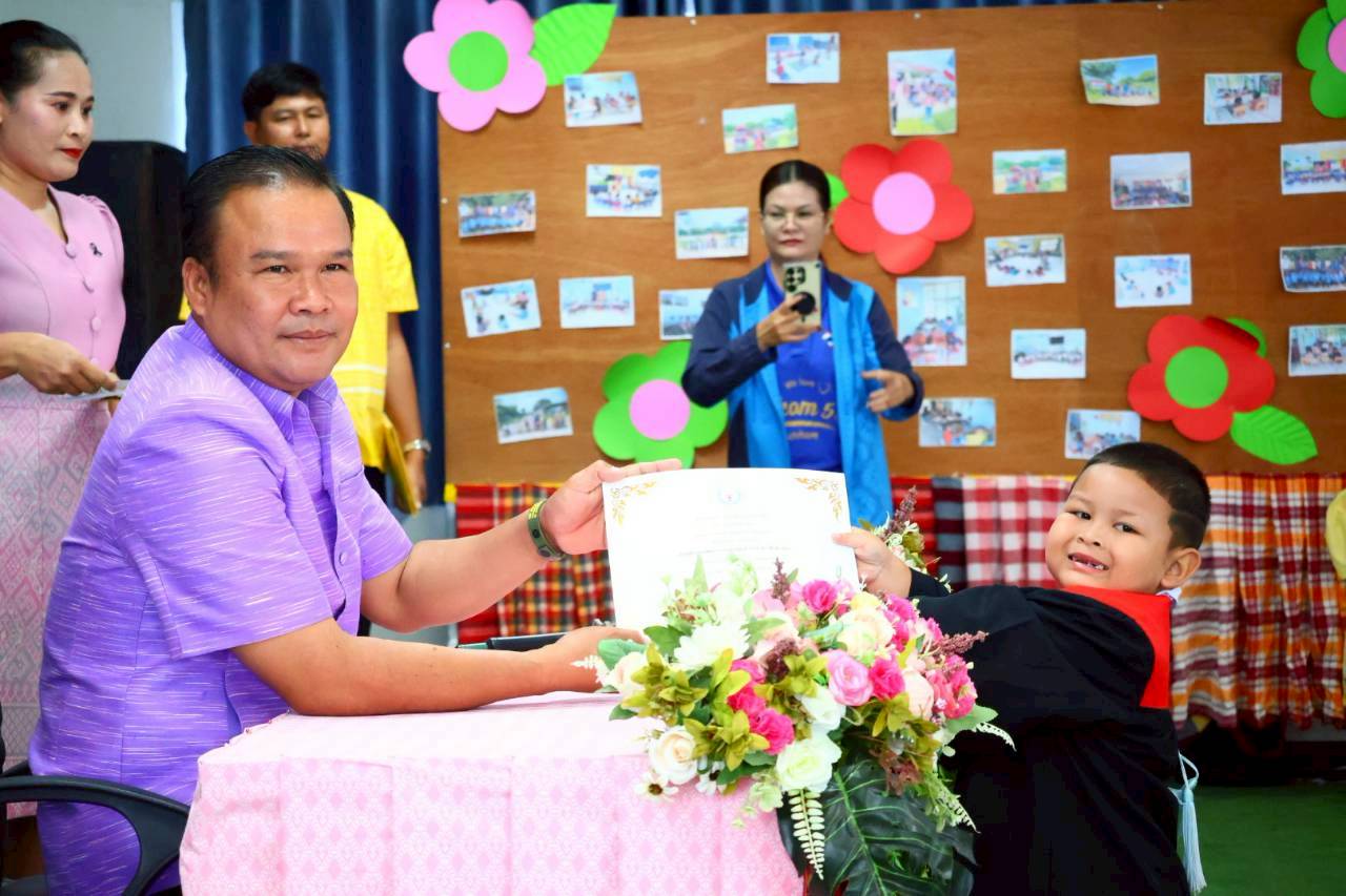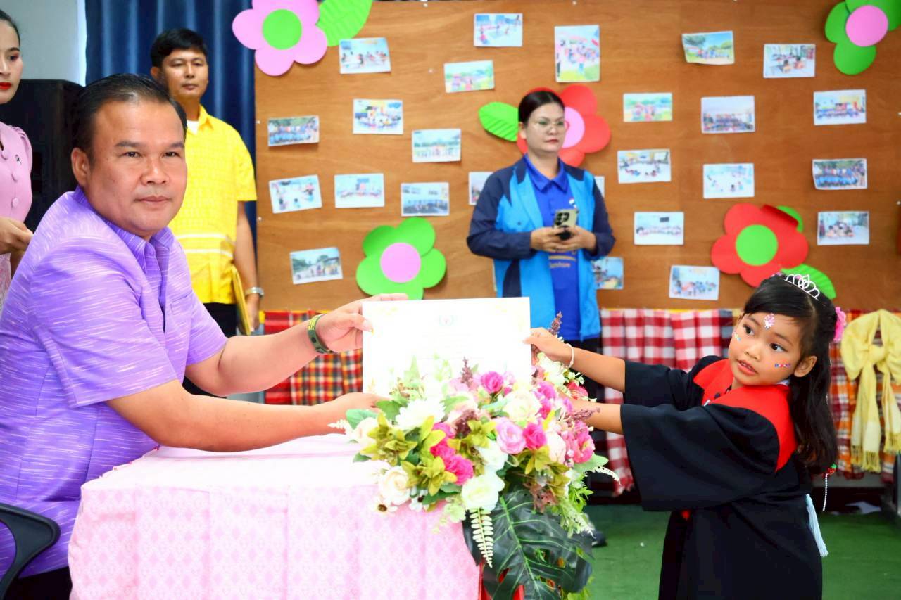 เทศบาลตำบลจันทบเพชร วันที่ 25 มีนาคม 2569 เวลา 09.00 น. นายธีระศักดิ์ บุญด้วง นายกเทศมนตรี เป็นประธานกล่าวเปิดงาน และมอบเกียรติบัตร ในกิจกรรมบัณฑิตน้อย ศูนย์อบรมเด็กก่อนเกณฑ์วัดสายโท 6 เหนือ ประจำปีการศึกษา 2568 พร้อมด้วย สมาชิกสภา คณะกรรมการสถานศึกษา พนักงานและเจ้าหน้าที่กองการศึกษา และผู้ปกครอง ณ ศูนย์อบรมเด็กก่อนเกณฑ์วัดสายโท 6 เหนือ โดยมีวัตถุประสงค์ เพื่อสร้างขวัญกำลังใจ ความภาคภูมิใจในความสำเร็จเบื้องต้นแก่เด็กและผู้ปกครอง เสริมสร้างความรู้สึกรักและผูกพันกับสถานศึกษา พัฒนาศักยภาพเด็กทั้งด้านร่างกาย อารมณ์ สังคม และสติปัญญา รวมถึงกระตุ้นให้เด็กเห็นความสำคัญของการศึกษาและอยากเรียนต่อในระดับที่สูงขึ้น