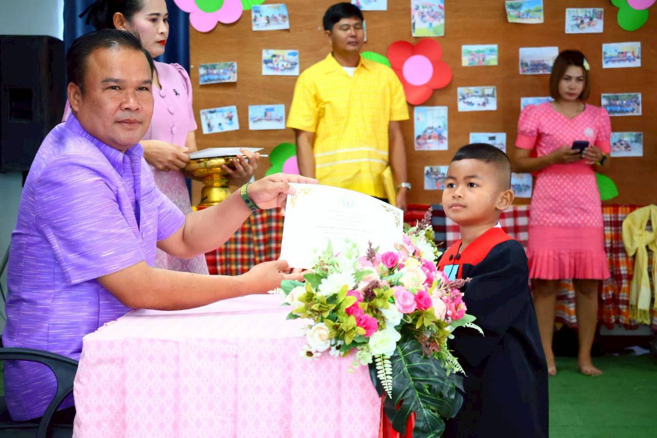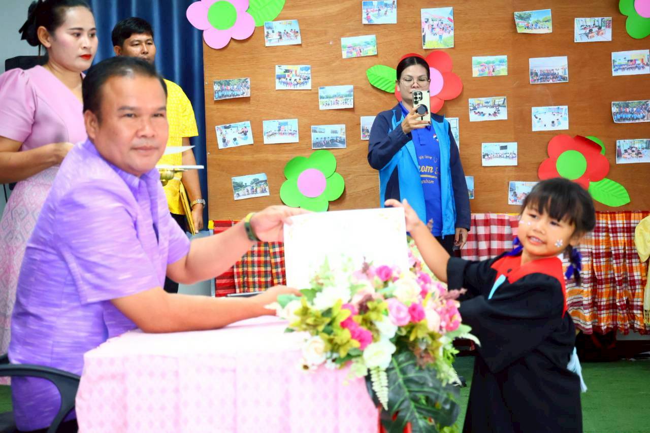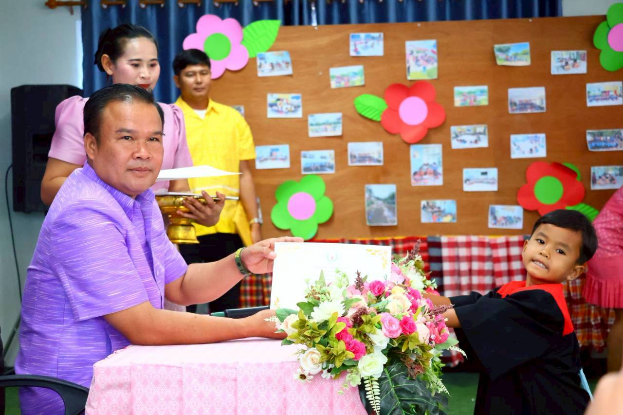 เทศบาลตำบลจันทบเพชร วันที่ 25 มีนาคม 2569 เวลา 09.00 น. นายธีระศักดิ์ บุญด้วง นายกเทศมนตรี เป็นประธานกล่าวเปิดงาน และมอบเกียรติบัตร ในกิจกรรมบัณฑิตน้อย ศูนย์อบรมเด็กก่อนเกณฑ์วัดสายโท 6 เหนือ ประจำปีการศึกษา 2568 พร้อมด้วย สมาชิกสภา คณะกรรมการสถานศึกษา พนักงานและเจ้าหน้าที่กองการศึกษา และผู้ปกครอง ณ ศูนย์อบรมเด็กก่อนเกณฑ์วัดสายโท 6 เหนือ โดยมีวัตถุประสงค์ เพื่อสร้างขวัญกำลังใจ ความภาคภูมิใจในความสำเร็จเบื้องต้นแก่เด็กและผู้ปกครอง เสริมสร้างความรู้สึกรักและผูกพันกับสถานศึกษา พัฒนาศักยภาพเด็กทั้งด้านร่างกาย อารมณ์ สังคม และสติปัญญา รวมถึงกระตุ้นให้เด็กเห็นความสำคัญของการศึกษาและอยากเรียนต่อในระดับที่สูงขึ้น