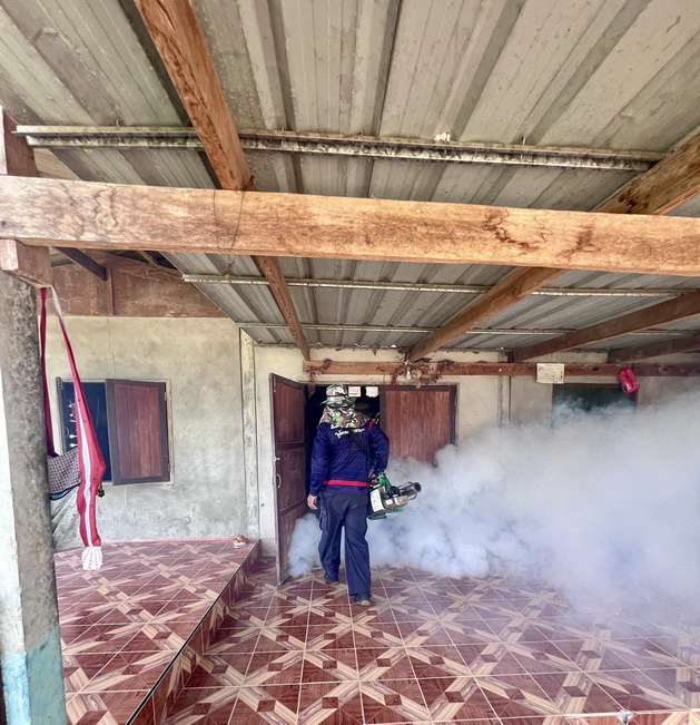 ลงพื้นที่พ่นหมอกควัน ควบคุมไข้เลือดออก ม.6 บ้านสายโท 7