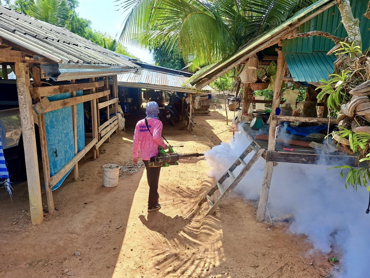 ลงพื้นที่พ่นหมอกควัน และหยอด "ทรายกำจัดลูกน้ำยุงลาย" หมู่ที่ 8 บ้านสายโท 8 เหนือ