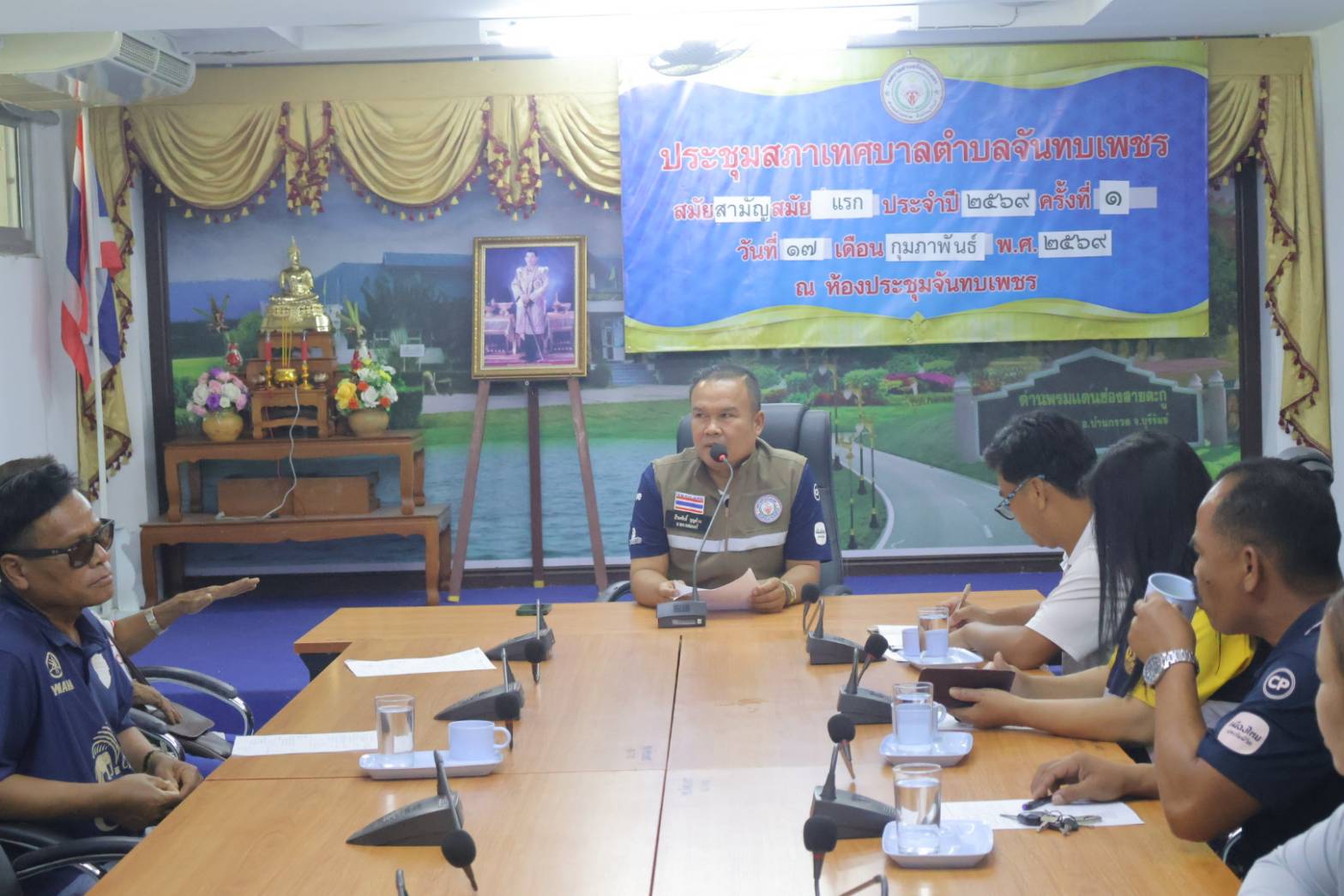 เทศบาลตำบลจันทบเพชร วันที่ 8 เมษายน 2569 เวลา 10.30 น. นายธีระศักดิ์ บุญด้วง นายกเทศมนตรี เป็นประธานในการประชุมไกล่เกลี่ยระงับข้อพิพาท เรื่องการเข้าไปใช้ประโยชน์พื้นที่สาธารณะ บริเวณสระน้ำสาธารณะ บ้านสายโท 4 ใต้ หมู่ที่ 10 ตำบลจันทบเพชร โดยมี นายประเสริฐ แต่งพลกรัง ผู้ใหญ่บ้าน ม.10 (ผู้ร้อง) นายสวัสดิ์ ศิริประโคน (คู่กรณี) และคณะกรรมการศูนย์ยุติธรรมชุมชนตำบลจันทบเพชร เจ้าหน้าที่นิคมสร้างตนเอง อ.บ้านกรวด เข้าร่วมไกล่เกลี่ย ณ ห้องประชุมเทศบาลตำบลจันทบเพชร